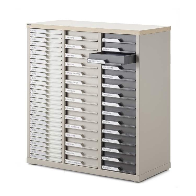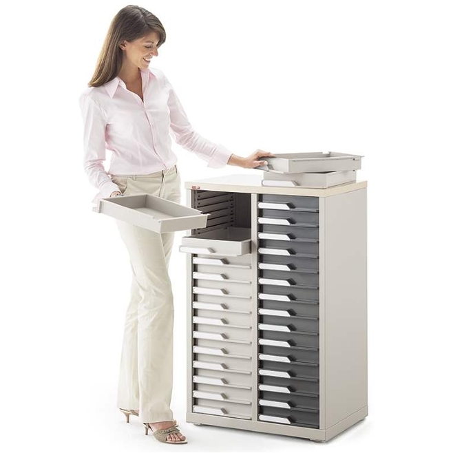 A équiper de tiroirs en fonction de vos besoins de classement : tiroirs hauteur 3, 6 ou 9 cm, intervertibles librement.