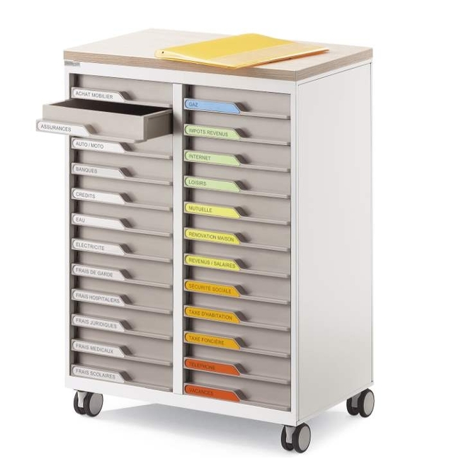 A équiper de tiroirs en fonction de vos besoins de classement : tiroirs hauteur 3, 6 ou 9 cm, intervertibles librement.