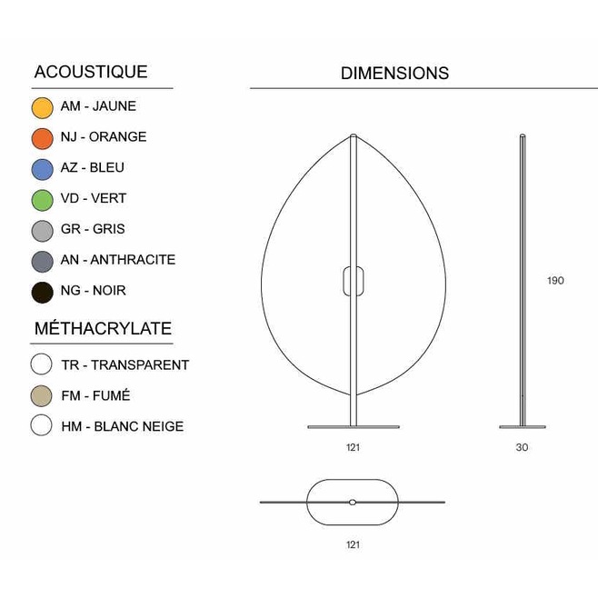 Cloison de séparation en forme de feuille en méthacrylate, 3 finitions.