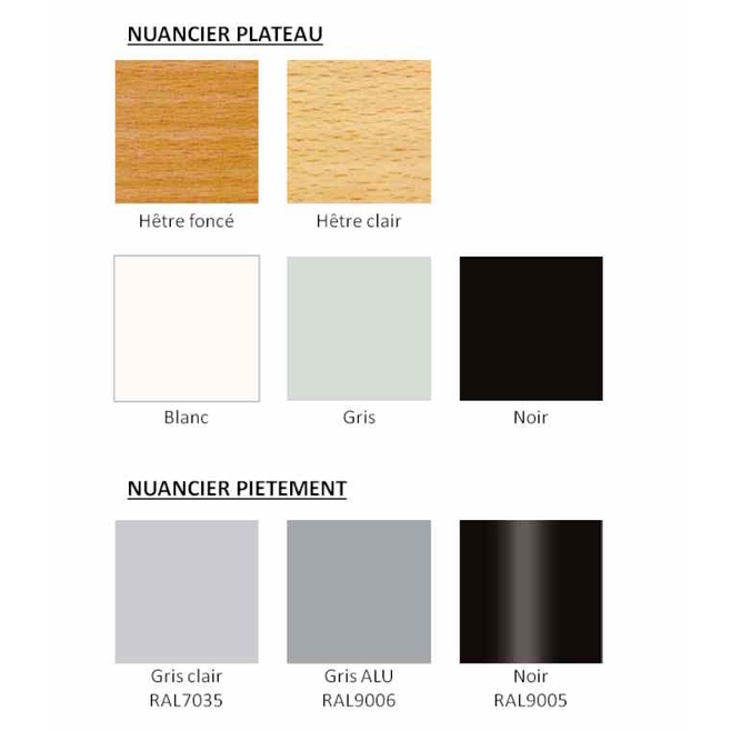 Tables rectangles : Profondeur 60 ou 80 cm ; Longueur 120, 140, 160 ou 180 cm
