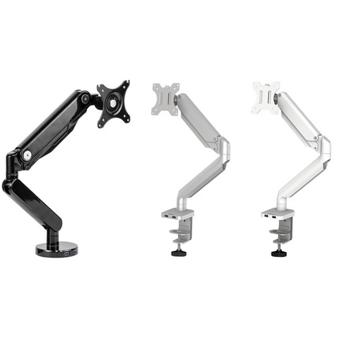 Les modèles 1 écran et 2 écrans, horizontal, sont disponibles en Noir, Argent ou Blanc.
