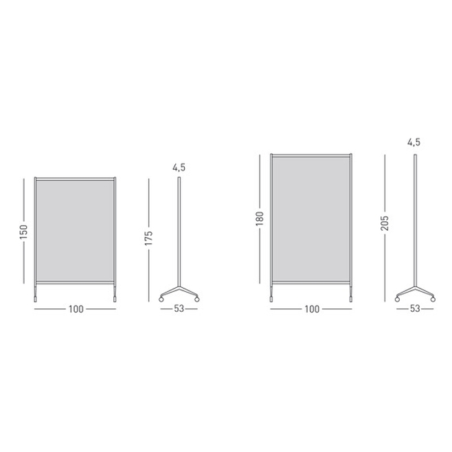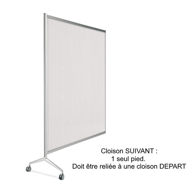 Cloison SUIVANT : 1 seul pied à roulettes. Doit être accrochée à une cloison DÉPART